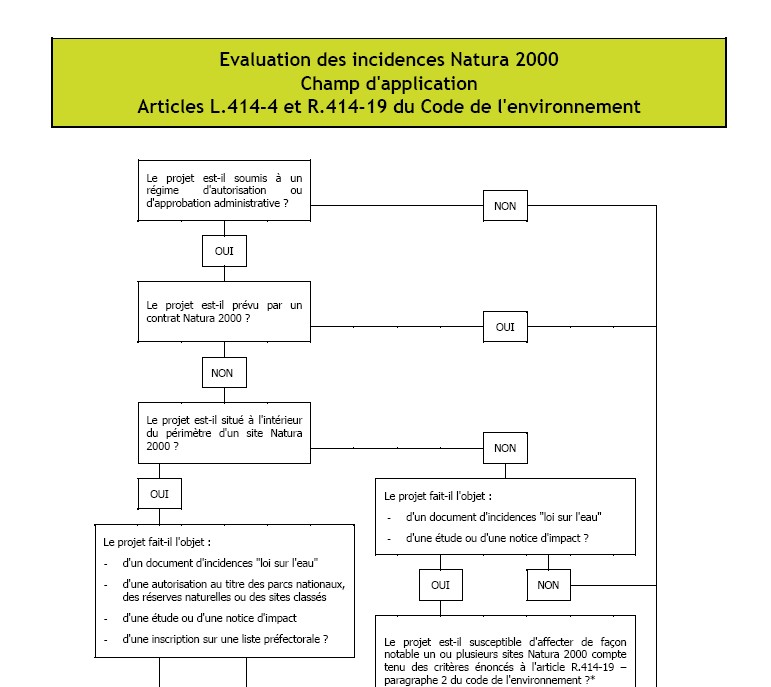 Le Code de l’environnement prévoit que « les programmes ou projets de travaux, d’ouvrage ou d’aménagement soumis à un régime d’autorisation ou d’approbation administrative, et dont la réalisation est de nature à affecter de façon notable un site Natura 2000, font l’objet d’une évaluation de leurs incidences au regard des objectifs de conservation du site. Les travaux, ouvrages ou aménagements prévus par les contrats Natura 2000 sont dispensés de la procédure d’évaluation mentionnée. »